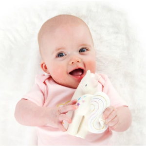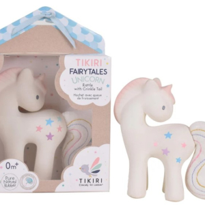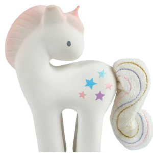 TIKIRI Cotton Candy Unicorn Organic Natural Rubber Rattle with Crinkle Tail
