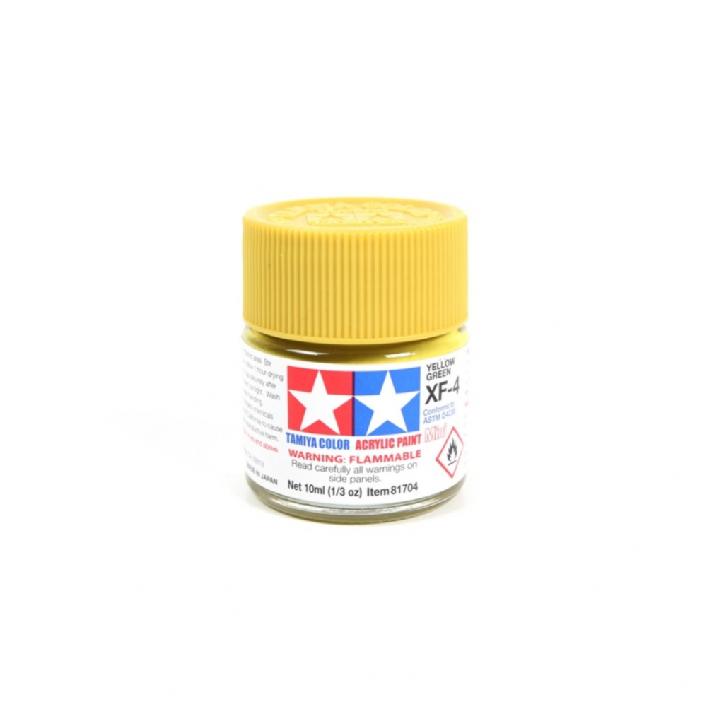 Tamiya Acrylic Paint XF-4 Yellow Green. Yellow-green with a matte finish. Contents: 10ml